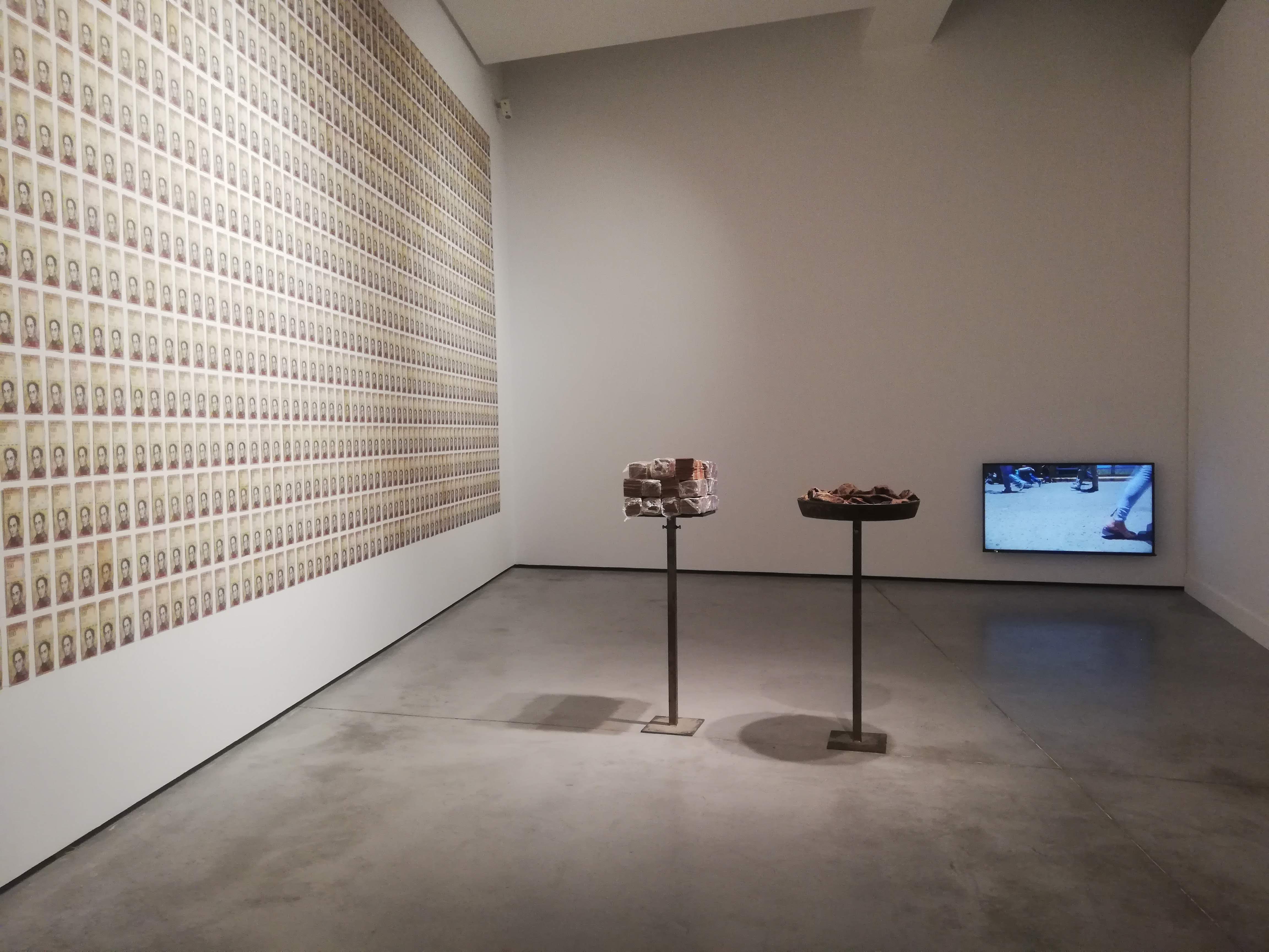 Con la cabeza ocupada en estas dudas llegamos a la siguiente sala. En ella, una serie de instalaciones nos recuerdan “lo malo” del capitalismo, y, mediante una asociación de ideas elemental, entendemos que lo que quieren significar es la relación directa entre la precariedad laboral, la devaluación del dinero y la pobreza.